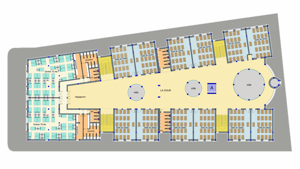 Internat avec 148 lits et espaces sanitaires